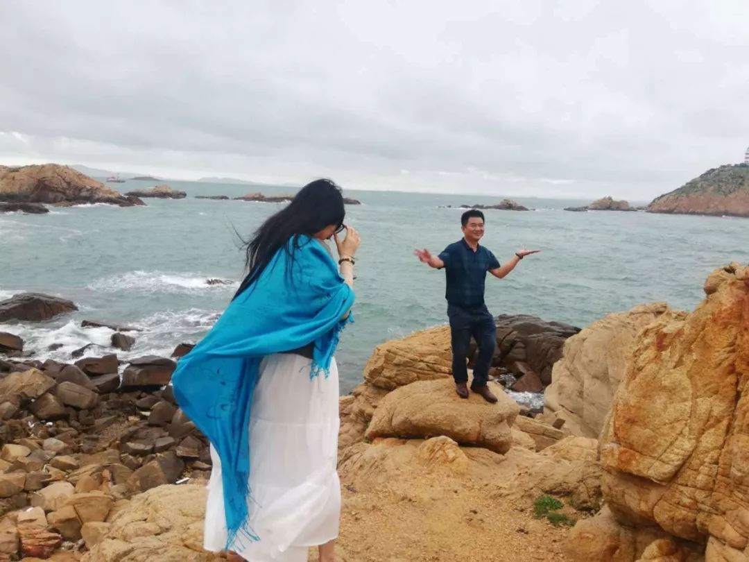 沐浴着六月柔和的风,游走在小岞的山水之间,艺术家们用诗意的语言和最美的镜头记录着每一个精彩瞬间。最令人兴奋的是小岞的风车岛。它是一座躲藏在喧嚣之外的小半岛。高高的大风车好似时间的齿轮,在细雨中静立,厚重而不迟缓。虽然烟雨蒙蒙,但海面上那一抹纯净的蓝依旧令人惊叹。刚下过雨的礁石干净如洗,我们迫不及待地登上岛屿,在礁石上迎风而立,听风观潮,大海、灯塔、鱼船尽收眼底。此时,不管是俊男靓女,都已顾不得矜持,撩起裙角,任衣袂在风中飘,与海风比风姿、与海水比妖娆。大家摆出各种最迷人的姿势,让一个个美丽的镜头在美好的瞬间定格。这是一场视觉的盛宴,给了我们美好想象和生命的激荡,你所有关于浪漫的幻想,都可以在这里得到满足。