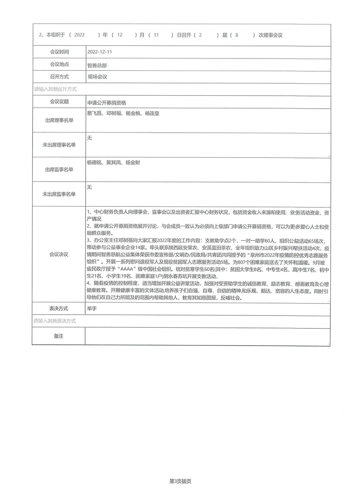 2022年社会组织年度报告